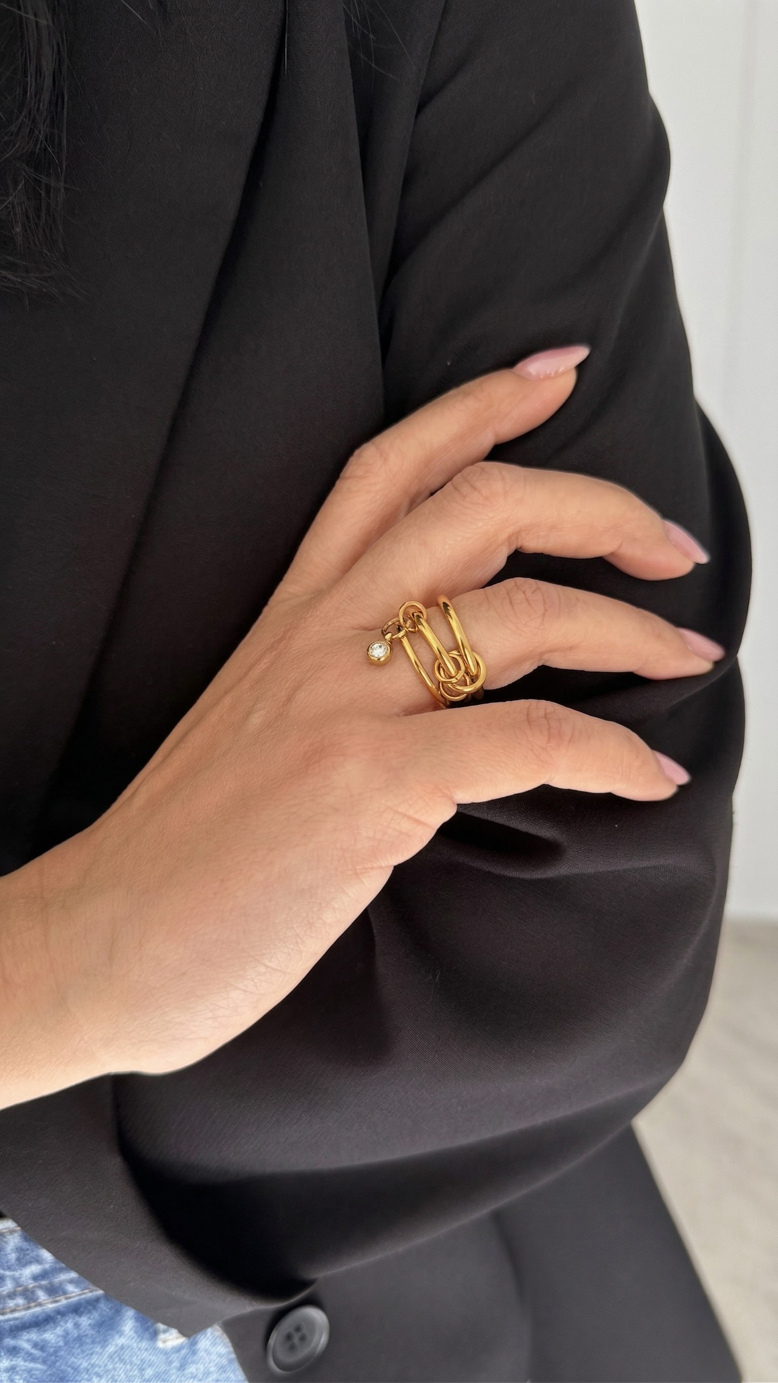 Modern and distinctive, this ring combines mixed-metal elegance with a refined detail, making it a versatile piece that pairs effortlessly with both gold and silver jewelry.